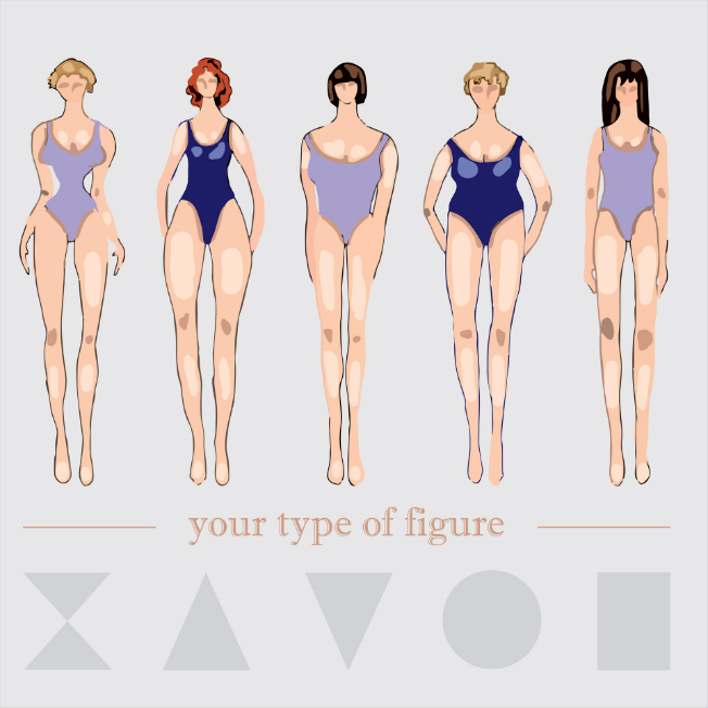 - Características: Hombros, cintura y caderas dibujan una línea recta, si bien es un cuerpo proporcionado no siempre resulta del todo femenino pues no dibuja forma alguna.